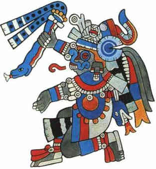 • Teztlipoca blanc à l'Ouest nommé Quetzalcoatl, le dieu de la Lumière, de la Sagesse et du Vent.