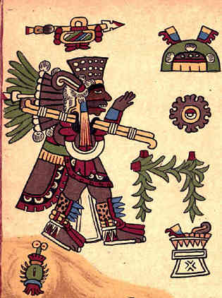 • Teztlipoca rouge à Est, nommé Xipe-Totec, le dieu de la Nature, de l'Agriculture et du Printemps.