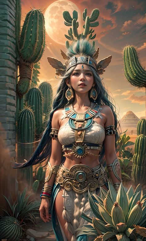 Xochitl approcha ses lèvres de la cassure. La sève du maguey apporte une sensation de fraîcheur vivifiante en bouche. A peine avait-elle bu une gorgée que la fleur de maguey disparut, laissant place à une belle jeune femme dont le buste émergeait de la plante.