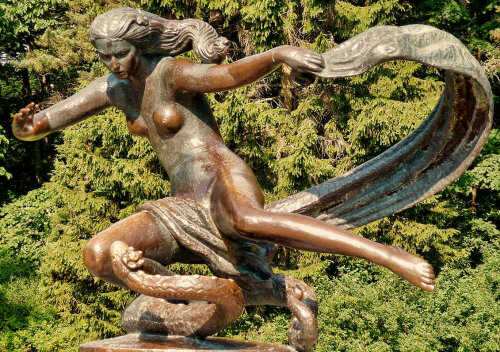Ainsi les douze frère d'Eglė purent-ils faire venir Žilvinas sur le rivage et ils le tuèrent avec des faux acérées.