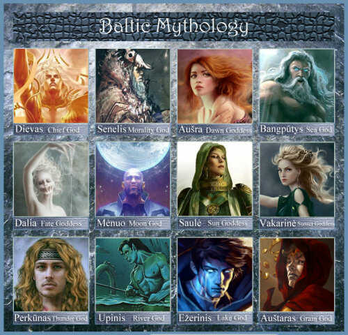 Théodor NARBUTT : L'historien polono-lituanien il a écrit l'ouvrage en dix volumes intitulé Histoire de la nation lituanienne entre 1835 et 1841. Le premier volume contenait une description de la Mythologie balte. Cependant, les historiens modernes ont accusé Narbutt de falsifier des faits historiques et de rapporter des spéculations. Ainsi, certains dieux mentionnés uniquement par Narbutt et inconnus d’autres sources sont généralement traités comme des inventions de l’auteur mais ses idées sont toujours très populaires parmi les groupes pagans