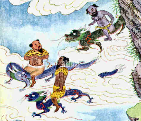 Son intervention dans la mythologie de la Chine se situe lors de la séparation du ciel et de la Terre.