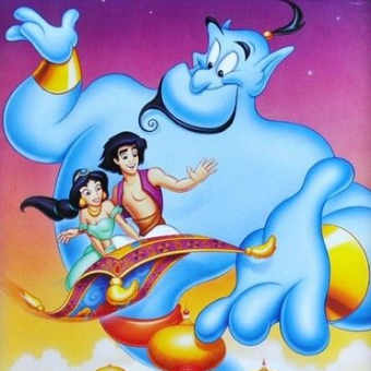 Par inadvertance, il frotte la bague et sort un génie, qui l'aide à s'évader. La lampe contient un autre génie plus puissant, qui l'aide à devenir riche et lui permet d'épouser la princesse Badroulboudour. Le sorcier, cependant, ne veut pas abandonner ses desseins et trompe la femme d'Aladin en lui échangeant l lampe magique contre un lampe neuve. Grace à la magie du génie, il déplace le palais et la princesse en Afrique. Aladdin utilise l'anneau pour retrouver son épouse qui empoisonne le magicien. Le frère du magicien veut le venger