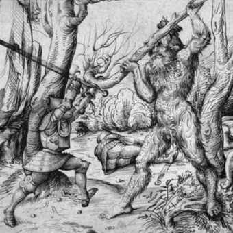 Il existe de nombreux contes qui relatent les aventures d'un homme sauvage, sujet qui était bien connu au Moyen-âge comme le souligne la terrible histoire du bal des ardents. Il est représenté par un homme couvert de poils à l’exception des mains, des pieds, du visage et de la poitrine pour la femme sauvage. Il tient en général un gourdin à la main fait d'une souche d'arbe mal dégrossie.