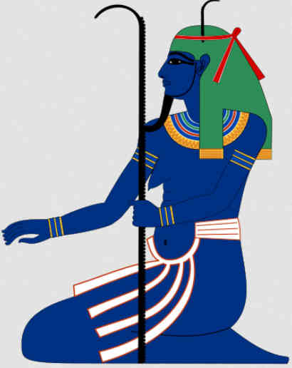 On le trouve parfois représenté sous la forme d'un personnage plongé à mi-corps dans l'eau d'un bassin et soutenant de ses bras levés en l'air les dieux sortis de lui.