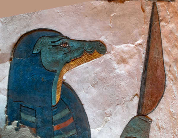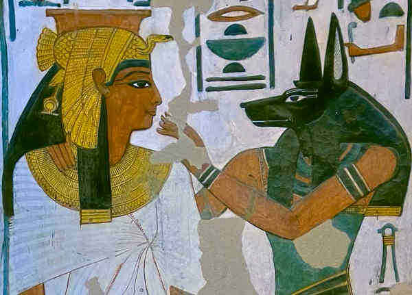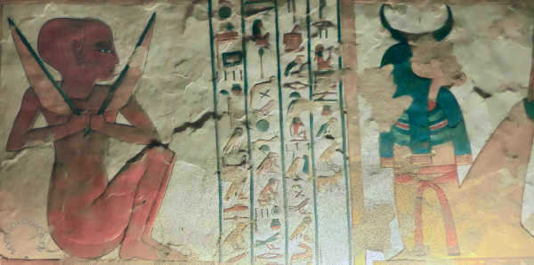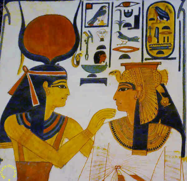 La déesse de l'Occident, Imentet - Hathor, et Néfertari dont on remarquera les tatouages sur les avant-bras.