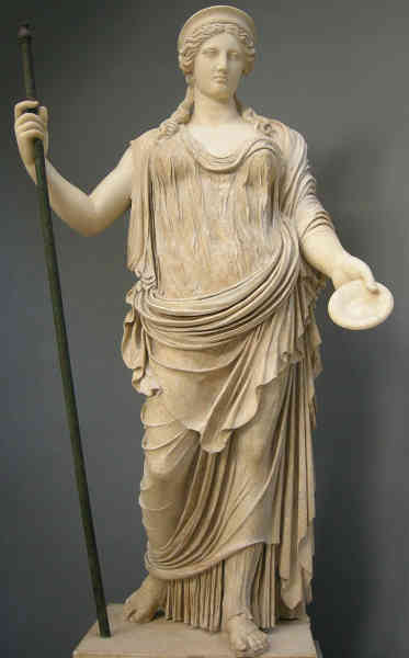 Au V ième siècle, Phidias, Alcamène, Kolotès et Polyclète créèrent un nouveau type pour donner à la déesse une attitude pleine de noblesse.