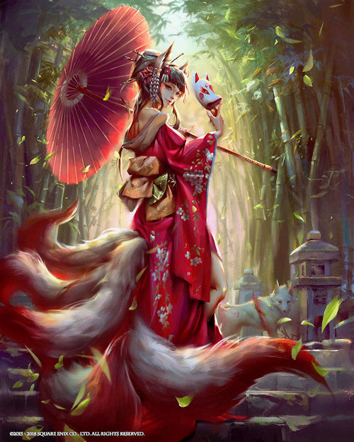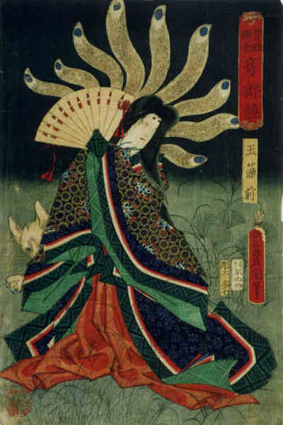 Après avoir semé le chaos en Chine et en Inde en possédant l'esprit des concubines elle est apparue au Japon sous le nom de Tamamo-no-Mae, la courtisane la plus apréciée de l'empereur Konoe. On a dit qu'elle était une femme des plus belles et des plus intelligentes, capable de répondre à toute question posée.