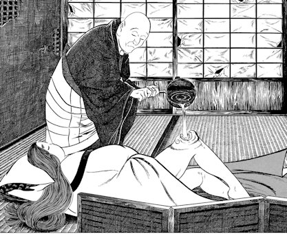 - JINMENSO : Tumeur au genou qui se transforme en visage humain dont la bouche avale goulument nourriture et saké.
