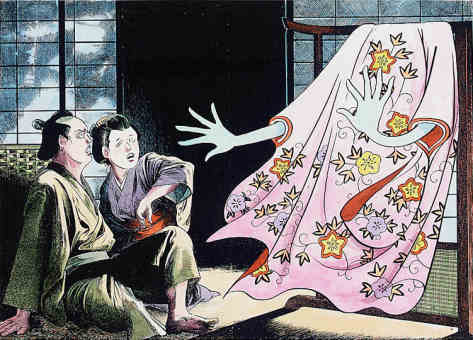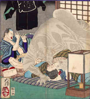 Elle fut changée en un Onry, esprit vengeur, qui voulait reproduire par vengeance le même acte dont elle a été victime.