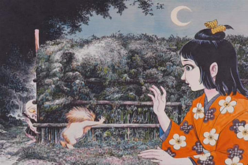 Légende : Kubitsuri Onna demande aux victimes potentielles si elles pensent qu'elle est belle. S'ils répondent par "non", soit elle les tuera avec ses longs ciseaux sur place, soit elle les assassinera dans leur sommeil. S'ils disent "oui", elle révélera que les coins de sa bouche sont fendus d'une oreille à l'autre, et elle répétera alors sa question. Si l'individu répond par "non", elle les tuera avec son arme, et s'ils disent "oui" avec hésitation, elle coupera les coins de la bouche d'une manière qui ressemble à sa propre défiguration. Les méthodes qui peuvent être utilisées pour survivre à une telle rencontre avec Kuchisake-onna est de répondre ni oui ni non et décrire sa beauté comme normale. Une autre méthode est de lui offrir des bonbons au caramel (bekko ame) qu'elle aura du mal à macher donnant ainsi à la victime de temps de s'enfuir. - KUDA-GITSUNE : Sorte de tout petit renard de la taille d'une souris qu’on peut garder dans un tube de bambou. Il a des yeux verticaux et des poils très fins. Le magicien convoque le kanko pour qu'il apparaisse à l'intérieur d'un tube de bambou L'origine de cette pratique remonte à un yamabushi (ascète montagnard) qui a acquis cet art en subissant une ascèse stricte sur le mont KinpuIl. Il doit son nom à sa queue, qui ressemble à un tube coupé en deux. Il peut être apprivoisé et conservé dans une poche ou une manche, et utilise son pouvoir surnaturel pour rechercher diverses informations qu'il murmure ensuite à l’oreille de son maître. Celui qui en prend soin peut ainsi voir le passé et le futur. Les Kanko seraient nombreux dans les montagnes du nord des provinces de Suruga, Tōtōmi et Mikawa.