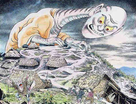 C'est un habitant traditionnel des maisons hantées. Un commerçant avare dormait dans une maison abandonnée plutôt que de dormir dans une auberge. Il se réveilla au milieu de la nuit, il vit un vieux shoji qui le regardait. Au lieu de s'enfuir, il ôta les globes oculaires du shoji et les a vendus à un chirurgien ophtalmologiste local. - MOMIJI-GARI : Femme-démon du mont Togakushi dans la province de Shinano, qui fut finalement tuée par le guerrier Taira no Koremochi. Elle était d'une beauté exceptionelle et bénie par la puissance du sixième roi démon céleste.