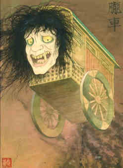 - OBOROGURUMA : Fantomatique charrette à bœufs avec un énorme visage humain qui apparaît les brumeuses nuits de pleine lune. On peut entendre le grincement de ses roues et si vous ouvrez la porte vous verrez la charrette garée devant chez vous. Cette légende est peut-être due aux récriminations des nobles dont les chars tirés par des chevaux étaient génés par les charrettes à boeufs de la population.