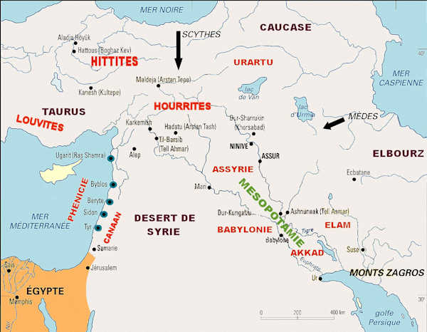 La Phénicie des Grecs, dont le nom se rattache peut-être à celui de Pouanît, par lequel les égyptiens désignaient les pays de l'Arabie (Ce nom se serait conservé à Carthage sous la forme Poeni), était constituée par la longue et étroite bande littorale (moins de 40 kil.) délimitée à l'ouest par la Méditerranée et à l'Est par les chitines calcaires du Liban et des Ansariés, alors couvertes de forêts.