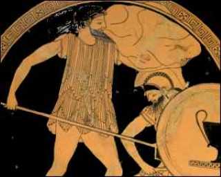 - Géant tué par Athéna qui l'écorcha et se servit de sa peau comme d'un bouclier.