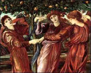 On en comptait ordinairement trois (Aeglé, Erytheïa, Hespéris) auxquelles Apollodore ajoute Aréthuse, mais on en figurait quelquefois sept voire onze. Elles habitaient une île voisine de l'Atlas, un jardin merveilleux, rempli de pommes d'or, et gardé par Ladon, dragon à cent têtes.