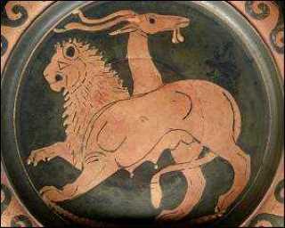 - Monstre mi chèvre mi lion terminé par une queue de serpent, fille de Typhon et d'Echidna. Chimère crachait de flammes que Bellérophon utilisa pour la tuer en jetant un bloc de plomb dans sa gueule. Le souffle ardent de Chimère fit fondre le plomb qui lui brûla les entrailles.